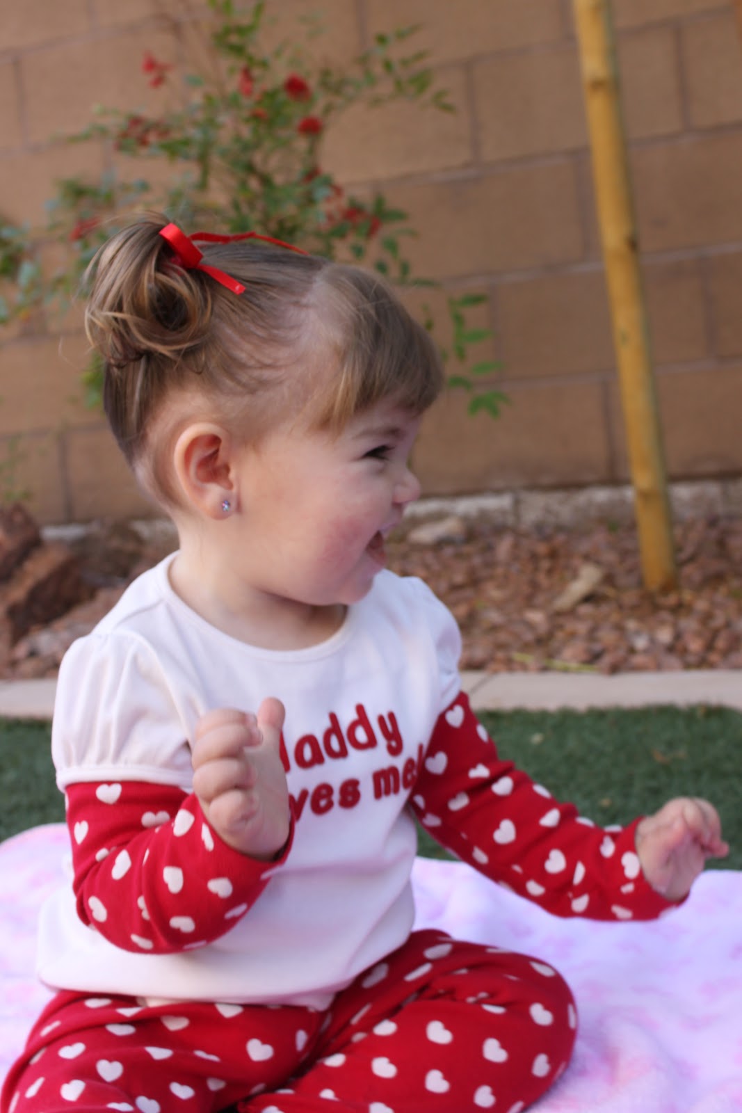 The next day, which was actually Valentine's Day, we had a mini photo shoot. I try to do this on every holiday so we have cute pictures to look back on later when she's way bigger, older, and not so squishy: