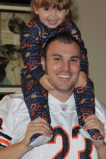 ...Sunday the Bears (Daddy's team) played in Tennessee. Mommy dressed Charley up in her Titans (Mommy's team) gear, and Grace wore her Chicago jammies. Even though the Titans aren't having a great season, it's fun to watch our teams play each other. We'll get 'em next time:
