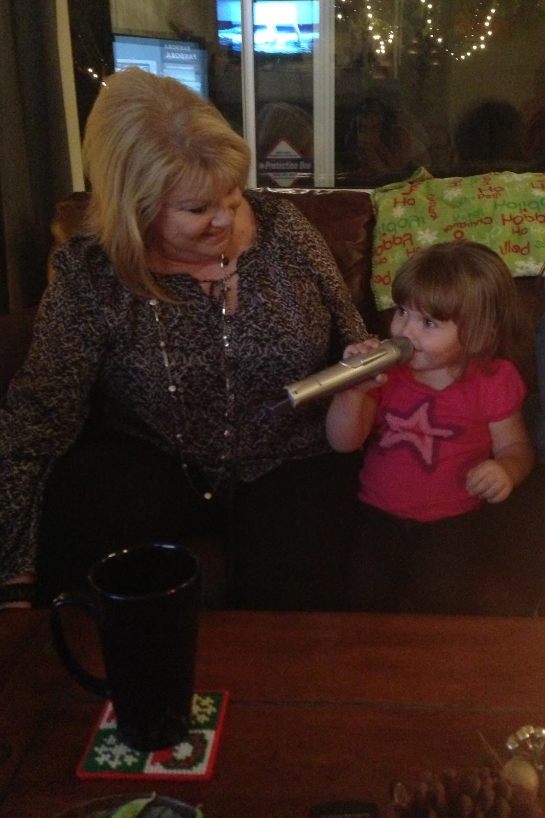 ...we went to the Cantor's annual Christmas party where Karl and Linda gave Grace her very first drum set! She was so excited. It was definitely a big hit: