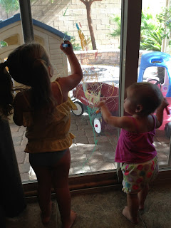 ...Charley colored on the back door some more. As you can tell by those blue lips, she really likes the markers: