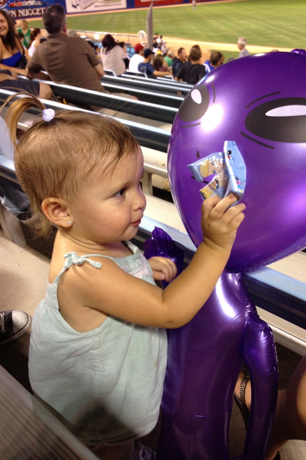 ...we went to the Las Vegas 51's baseball game with the Sebastians and the kids had a blast. They shared cotton candy, snow cones, and even beat each other up with some alien friends. Charley stayed out of the chaos and fed hers fruit snacks.