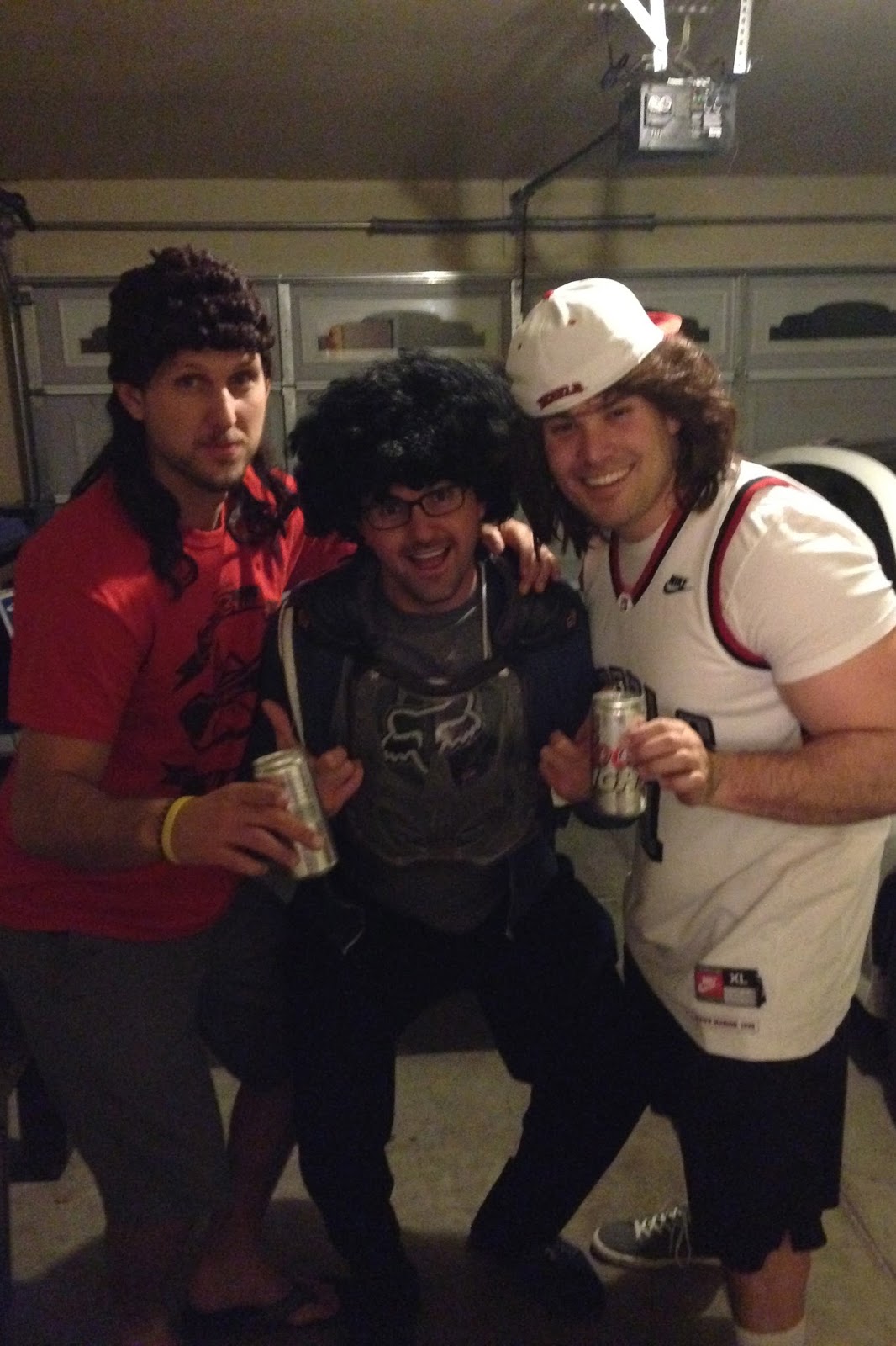 ...we went to Matt and Frannie's to watch the Rebels play, and Char kept walking around in her sunglasses. She fell asleep watching a movie, and didn't move when I took the iPad out of her hands. Daddy celebrated the win over San Jose State with the crazy Gerfys (and their wigs).