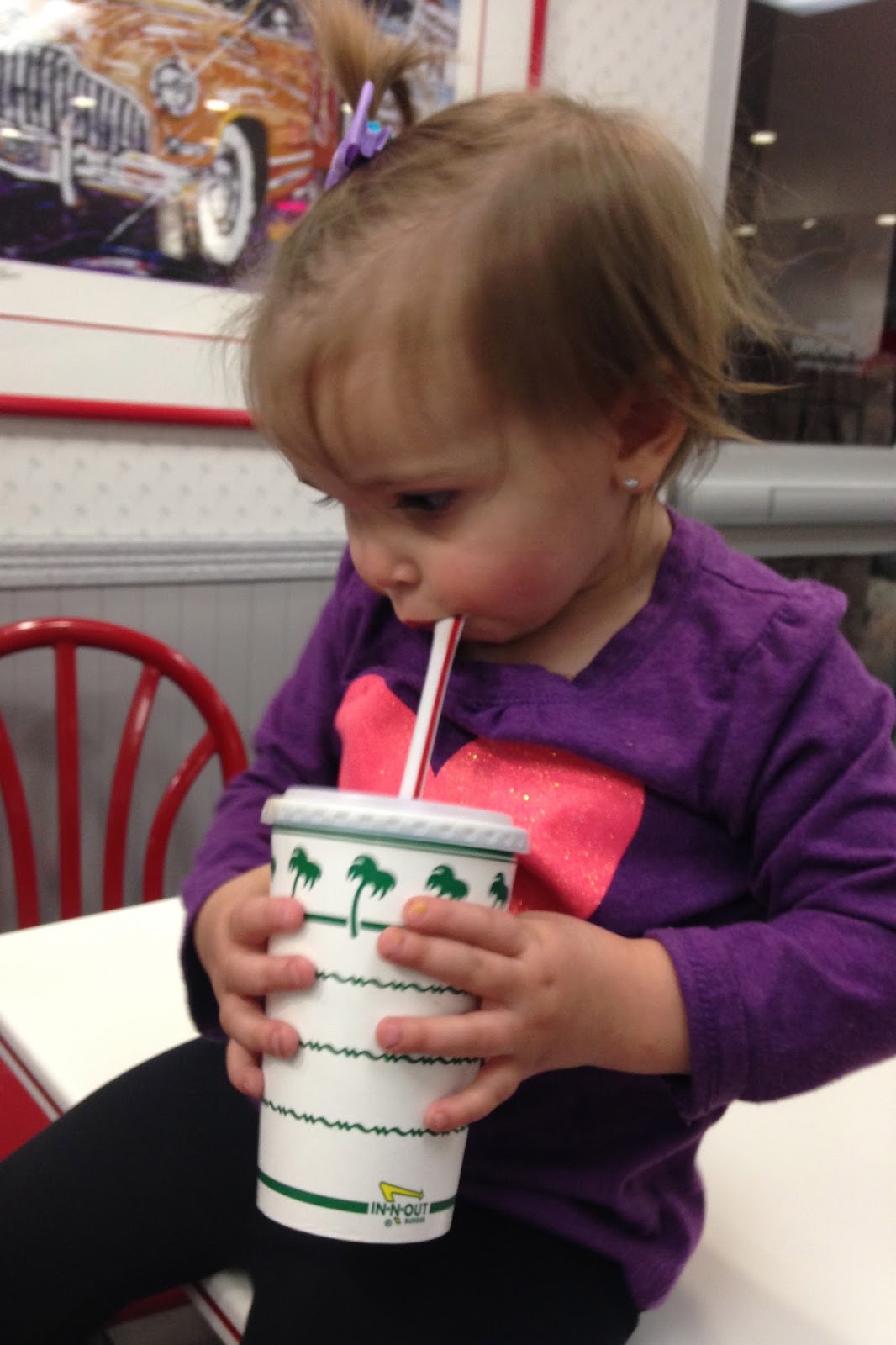 ...we went to In-N-Out for dinner, because Uncle Duane needed one of their yummy burgers before he went back to Nebraska. The big girls sat at their own table.