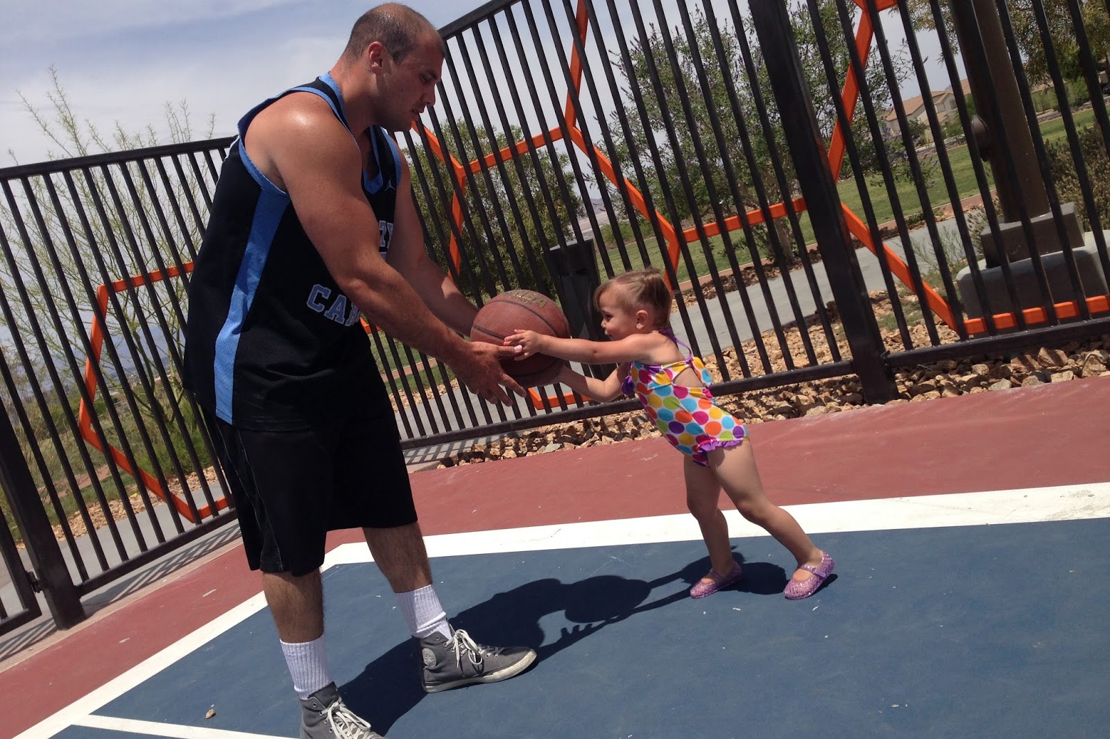 ...Friday, we met the Sebastians at the splash pad and had a blast running and splashing all over the place. Charley played basketball with Daddy, the kiddos enjoyed the swings, and they took over the playground after they got soaked and needed to warm up.
