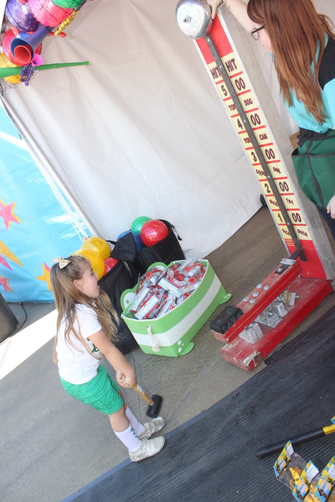 After the carousel, she played the hammer game with Auntis Elisha, and they won horns for the three girls.